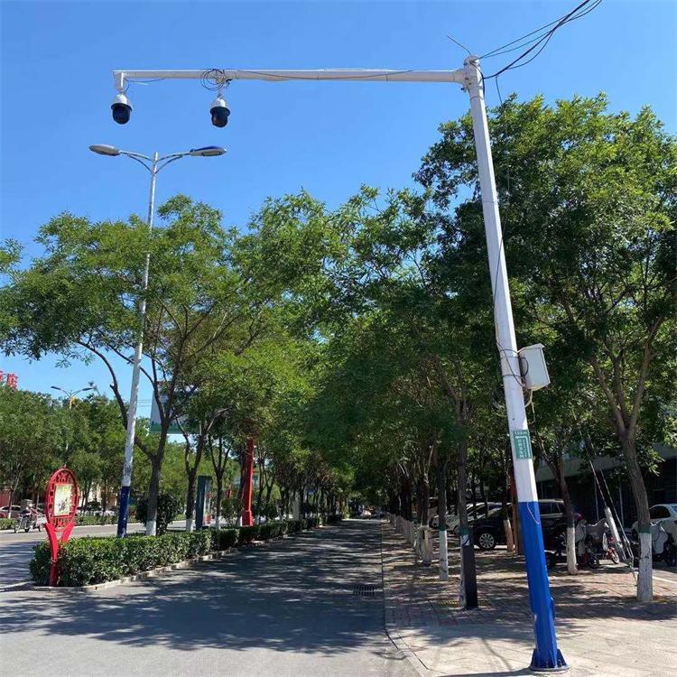 甘肃监控立杆L型道路监控立杆八角杆棱杆 监控立杆监控立杆有锥形杆、变径杆、八角杆、棱形杆,一般道路安装5米6米的监控立杆,小区公园安装3米4米的,监控立杆壁厚有2.0、2.5、2.75、4.0、5.0、6.0等,监控立杆高度参数不同,报价不一样,款式有L形、T形、F形等,使用场所不同款式和参数不同。一般公园小区选用等径杆或变径杆,高度3米、4米。监控立杆高度参数可按需制作。
