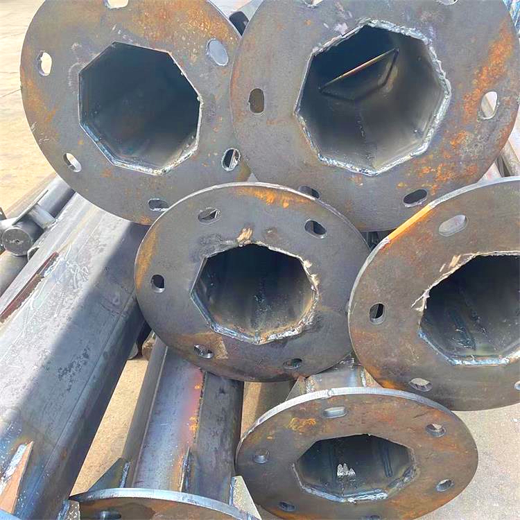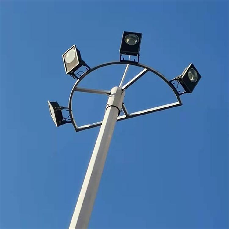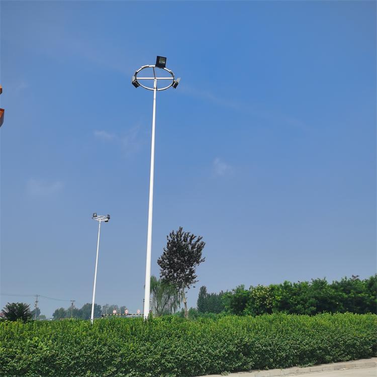 4.高杆灯灯杆圆锥形,八棱、十二棱、十八棱锥形杆体(可选),由钢板经剪制、折弯、自动连接成形,一般高度有10、20、2 5、3 0、3 5等参数,每种参数由3至4节插接组成. 配法兰钢底盘。表面热镀锌喷塑。